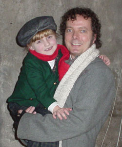 Bob Cratchit (with Evelyn Kampmeyer as Tiny Tim) in A Christmas Carol (Hedgerow 2004) |